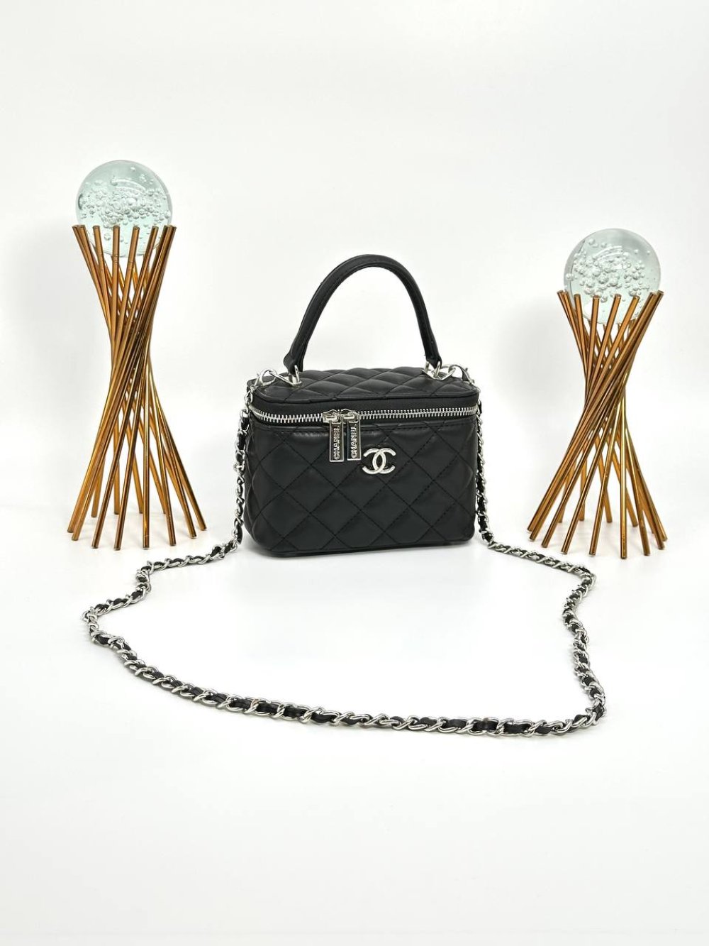 Chanel Vanity Case With Miror Black-Silver Women’s Bag VLT325 — Chanel.